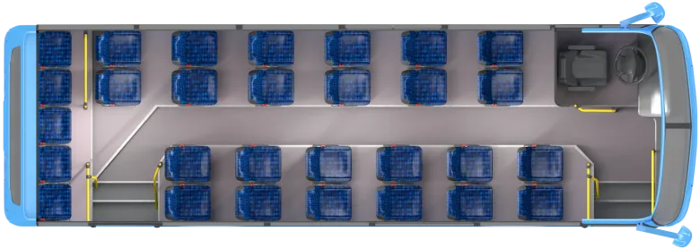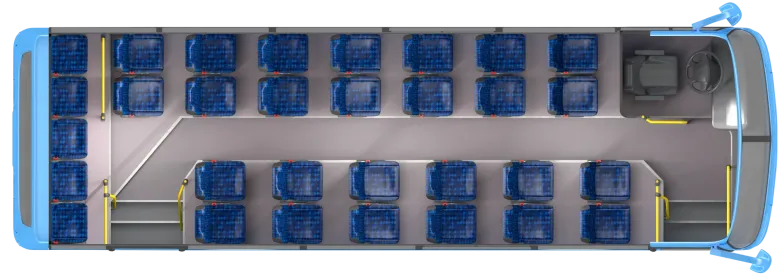 Автобус комплектуется двумя прислонно-сдвижными дверьми для удобной посадки и высадки пассажиров. Ширина прохода составляет не менее 650 мм