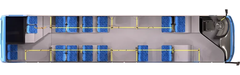 Автобус адаптирован для обслуживания маломобильных пассажиров: система наклона кузова в сторону дверей на 7° на остановках, низкий пол, механическая аппарель и оборудованное место для маломобильного пассажира.